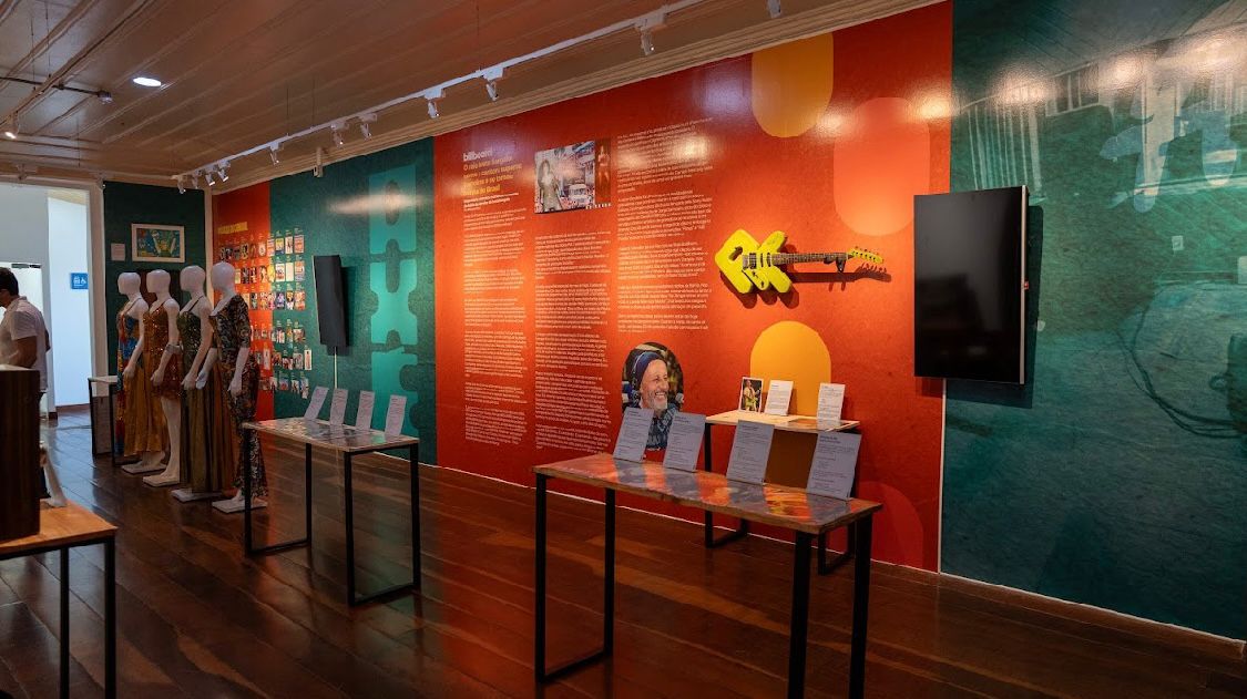 de Salvador. A exposição também inclui capas de discos, figurinos e instrumentos utilizados por artistas que foram fundamentais para a