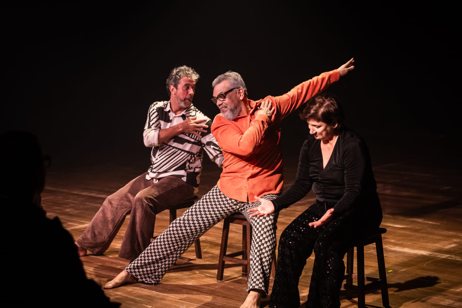 Na peça, contracenam os artistas e bailarinos sexagenários Esther Weitzman, Paulo Marques e Toni Rodrigues. Sem máscaras, eles levam ao palco toda a experiência na dança e convidam o público a refletir e acolher suas próprias vulnerabilidades. Ao lado de Frederico Paredes, Weitzman também assina a direção do espetáculo. Sexagenários,