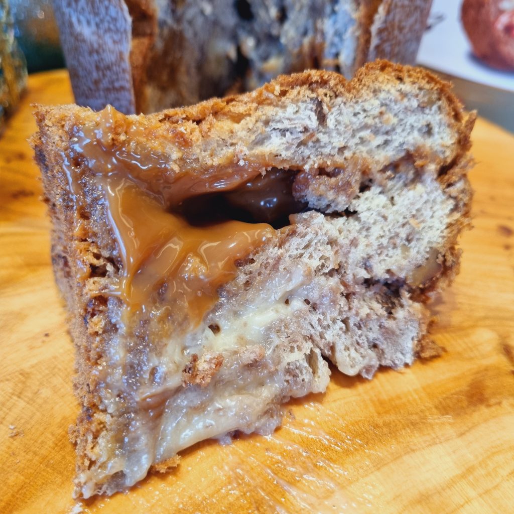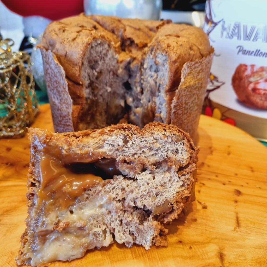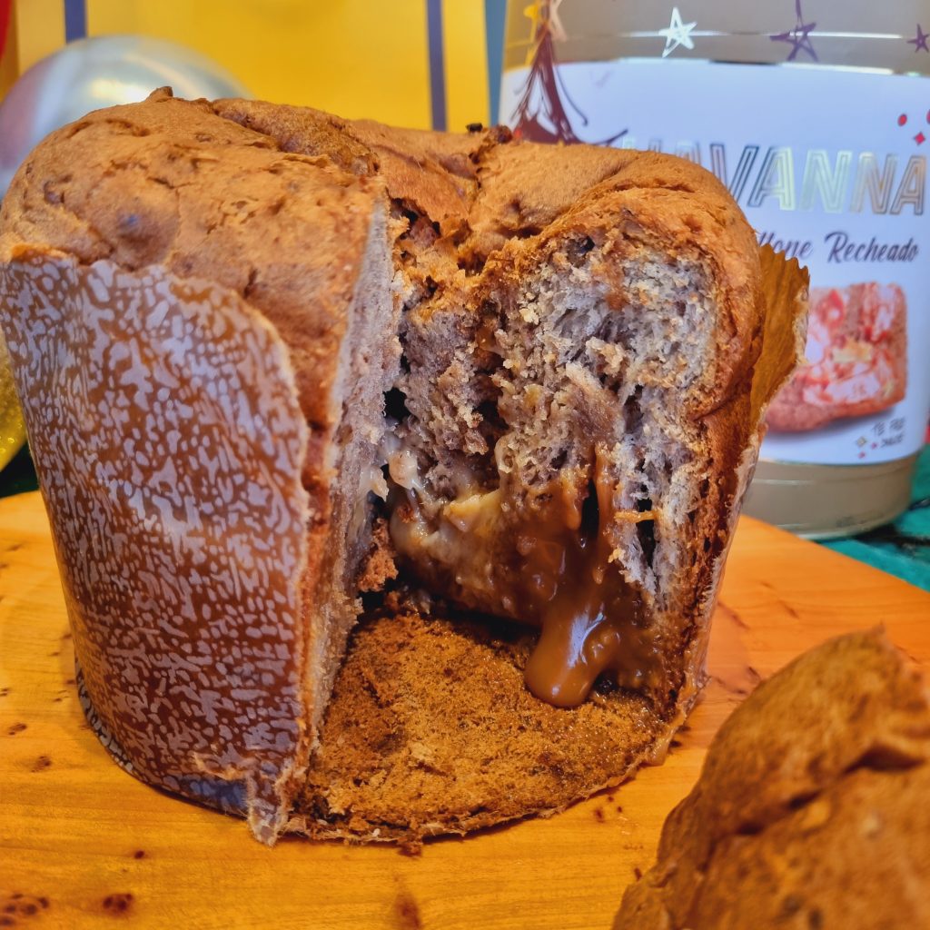 A Havanna encanta com sabores de felicidade há mais de 70 anos. A tradição do Natal é o panettone com o legítimo Dulce de Leche Argentino. Provamos o panettone Duplo Recheio de Dulce de Leche Havanna e Creme de Nozes, que leva nozes na massa e muito recheio.