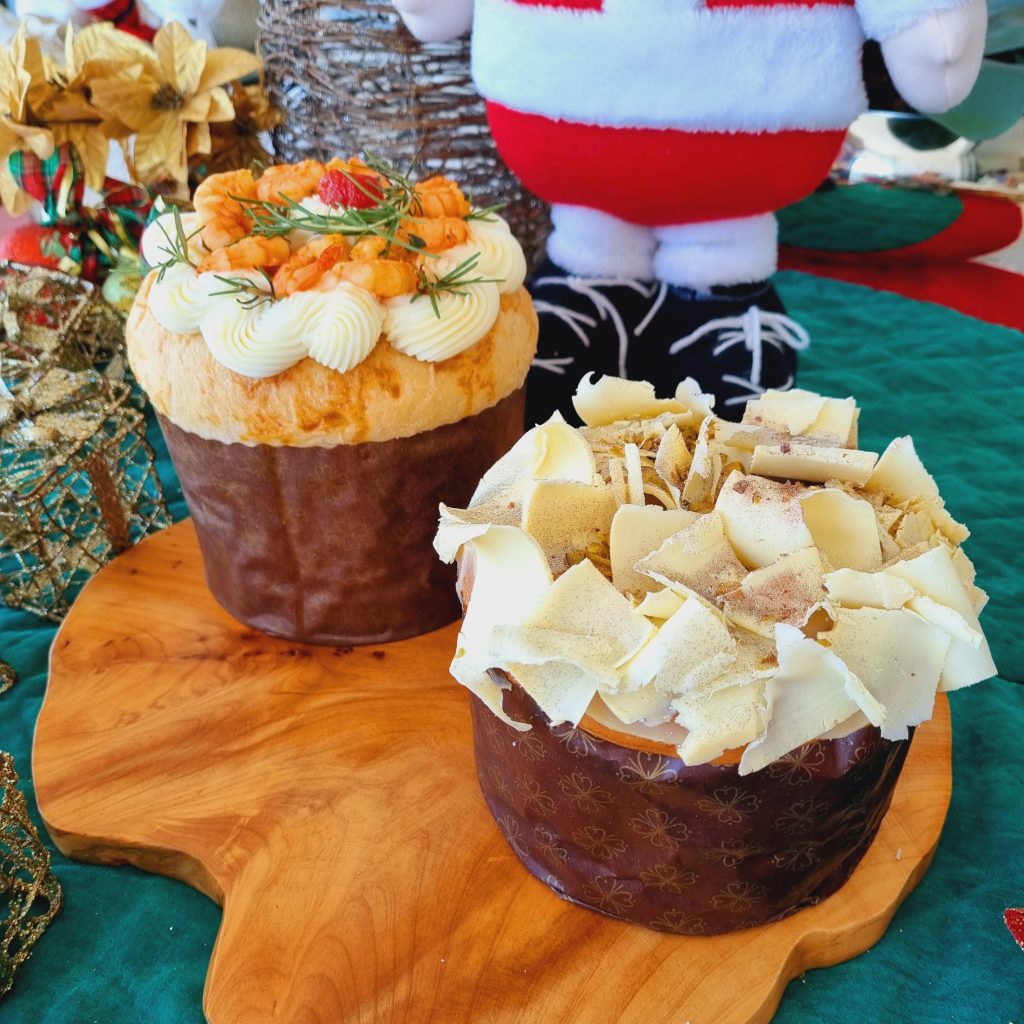 Tem ainda o Panetone Salgado trufado de camarão (1kg) – com massa de brioche com recheio cremoso de camarão e creme de parmesão [R$ 89,00]