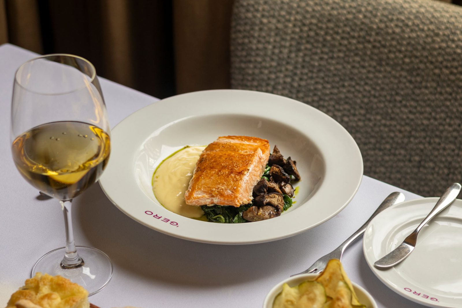 Nos pratos principais, receitas emblemáticas da casa: filé ao poivre vert com risoto de alho-poró ou salmão grelhado ao champagne, acompanhado de espinafre e funghi. Para encerrar, sobremesas como o tortino de frutas do bosque ou o mil-folhas com crème pâtissière.