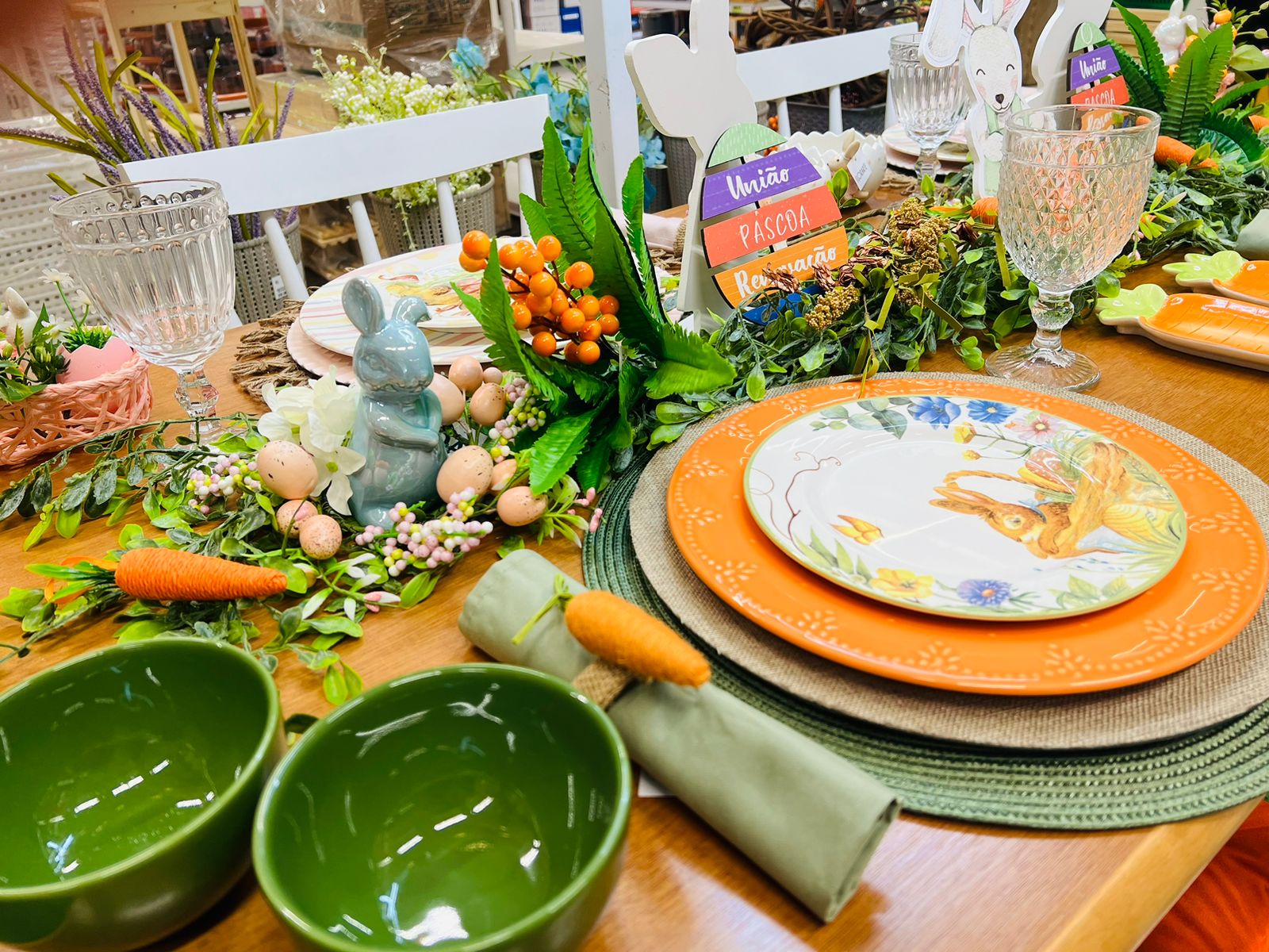 Pensando em tendências para a data, a Ferreira Costa preparou estilos de decoração, usando coelhinhos e ovos, que representam fertilidade e renascimento. Uma ideia que garante elegância à decoração é usar uma paleta de cores que combine com todo o espaço, sejam cores fortes, como o tradicional laranja, ou candy colors, que estão cada vez mais em alta nas festividades e combinam com a delicadeza da ocasião.