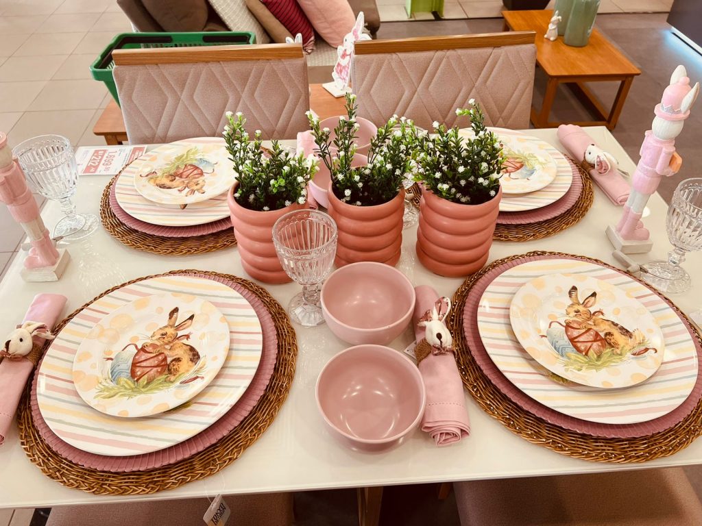 Outra dica é complementar utensílios e objetos que o consumidor já tenha em casa, como toalhas de mesa neutras ou de renda, louças, guardanapos e sousplats com estampas do tema. Vale ousar e resgatar a árvore de Natal com decorando de Páscoa. Use flores, coelhos de feltro, ovinhos e deixe a imaginação tomar conta.
