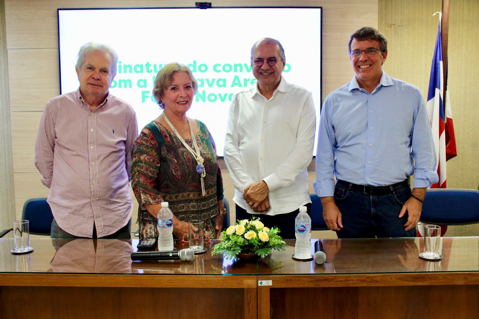 A cerimônia de lançamento contou com a participação do presidente do GACC-BA, Roberto Sá Menezes; do presidente da Arena Fonte Nova, Dênio Cidreira; da diretora de Relações Institucionais e de Assistência ao Paciente do GACC-BA, dra. Nubia Mendonça e do diretor administrativo financeiro da instituição, Evandro Gonçalves.
