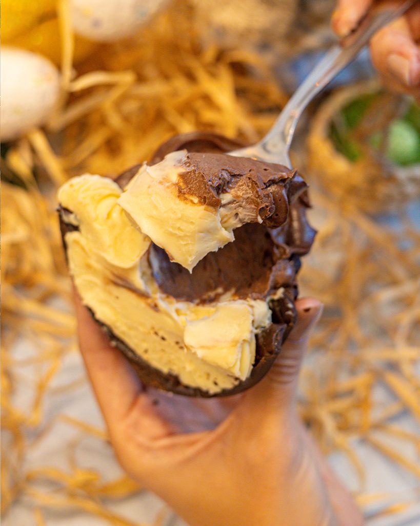 Entre as novidades, o cardápio apresenta os sabores Mil Folhas, com casca preta, brigadeiro, geleia e massa folhada (R$198); Pistache, com casca branca, brigadeiro de pistache e pistache torrado (R$219); Brownie com Doce de Leite, com casca preta, doce de leite e brownie (R$198); e Casadinho, com casca preta, brigadeiro branco e brigadeiro preto (R$169). Já no Trio de Ovos (R$198), o cliente pode escolher três entre os sabores disponíveis: Mil Folhas, Pistache, Brownie com Doce de Leite e Casadinho.