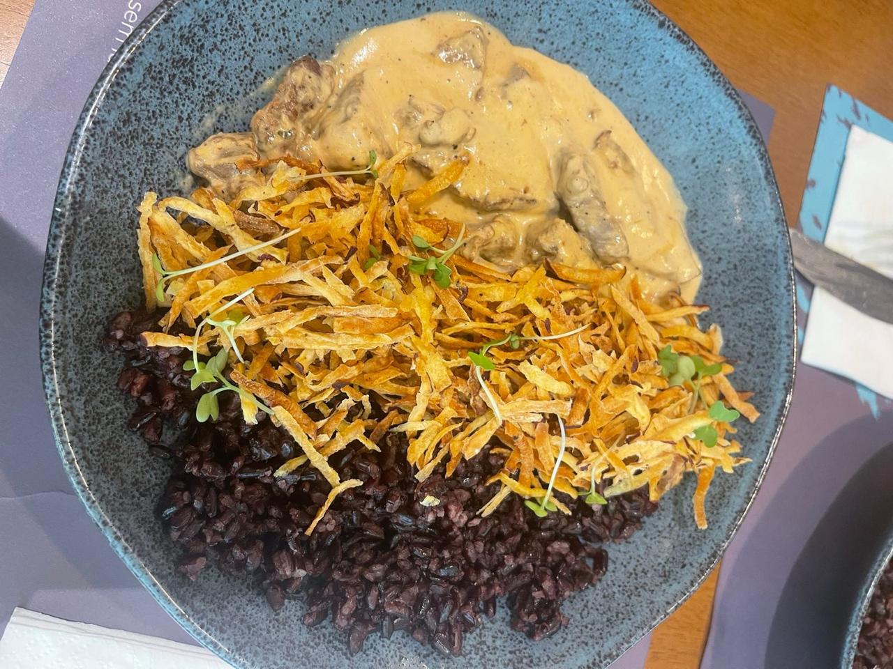 A entrada dá vida a um clássico paulistano: o Sanduíche de Pernil, composto por pernil suíno assado lentamente por 5 horas, servido em um pão saudável sem glúten, acompanhado de maionese de cebola e salsa. Como prato principal, o menu oferece Strogonoff de Carne, feito com arroz negro, batata palha da casa, filé mignon e shitake fresco. Para finalizar, a sobremesa é o Pudim de Leite, saudável e proteico, sem açúcar e sem lactose.