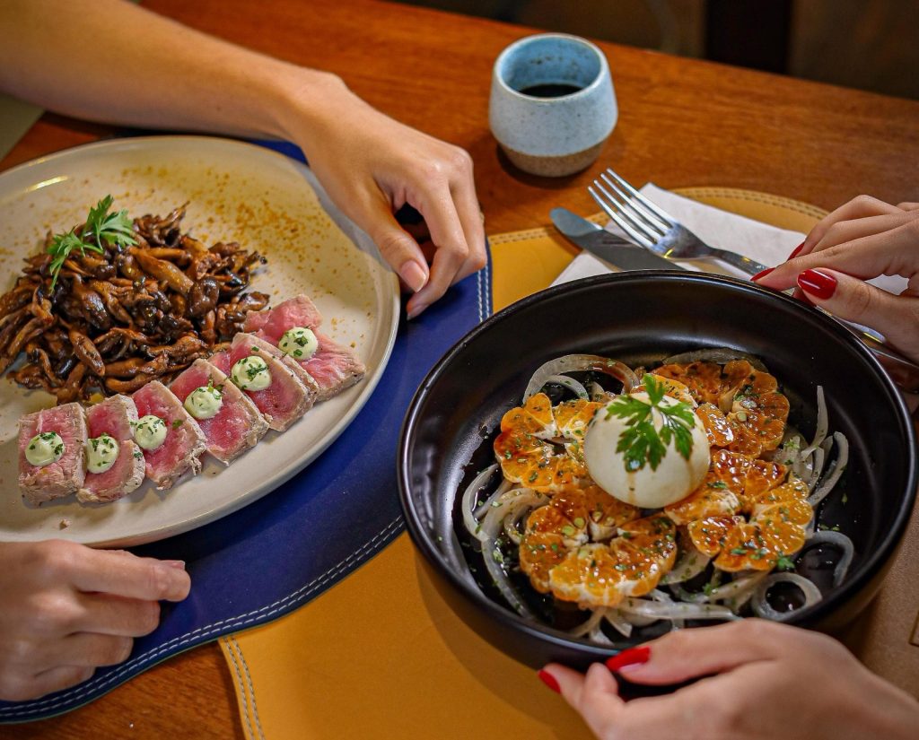 Entre as entradas, o destaque vai para a Burrata com Tangerina, o Ceviche de Tilápia com cebola roxa e batata doce e o Tuna Shimeji, um tataki de atum selado com maionese verde, shimeji cozido e cebolinha.