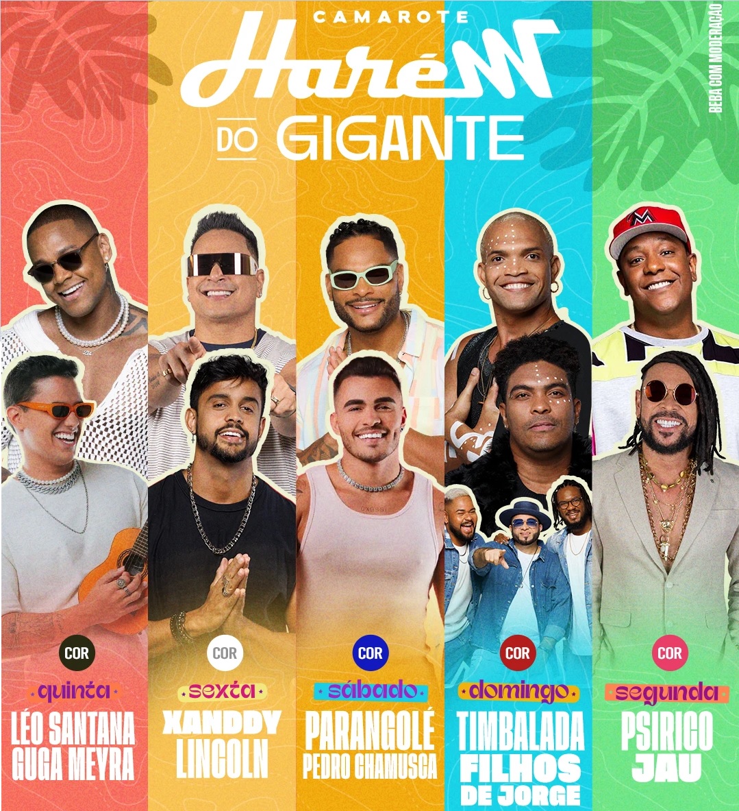 Presente no carnaval de Salvador há 17 anos, o Camarote Harém agora irá se chamar “Harém do Gigante”, uma referência ao cantor Léo Santana, que irá se apresentar e comandar a folia. Durante os seis dias de festa, a programação do camarote irá contar com nomes conhecidos do carnaval da Bahia como o próprio Léo Santana, que promete agitar os foliões com os seus hits que são a cara do carnaval, além de Xanddy Harmonia, Parangolé, Timbalada e Psirico. Para encerrar o carnaval com chave de ouro, no dia 13 (terça), a festa Pra Poucos desembarca pelo segundo ano consecutivo em Salvador.