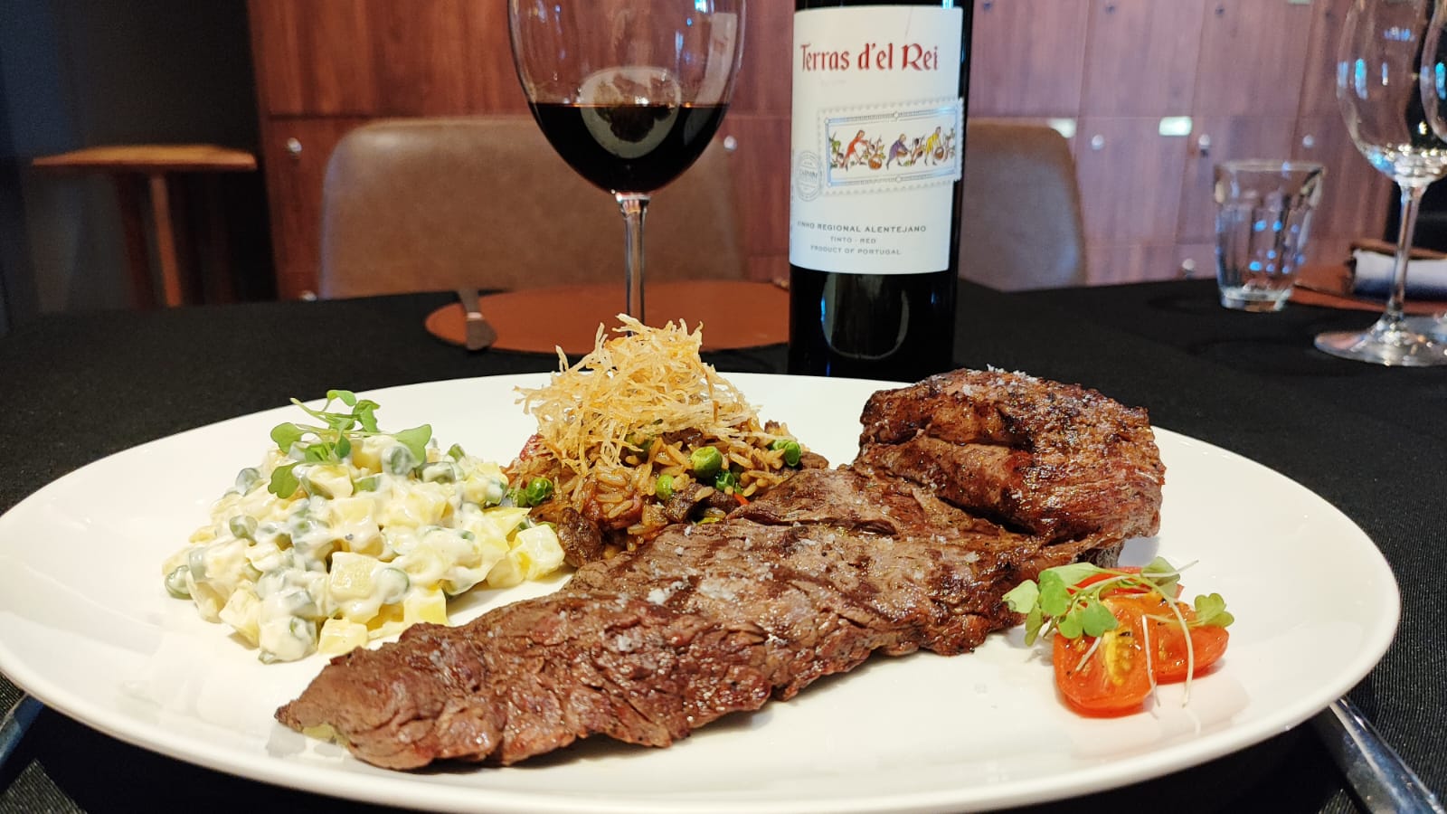 O menu inclui Fraldinha Angus, Batatatonese com vagem ao Siciliano e Arroz Quitéria, feito com pontinhas de churrasco e caldoso de ervilhas verdes. Para a harmonização, o vinho tinto português confere notas de frutas vermelhas, de corpo leve para médio e com taninos macios, proporcionando uma experiência sensorial completa, pelo valor único de R$ 250 (serve duas pessoas).