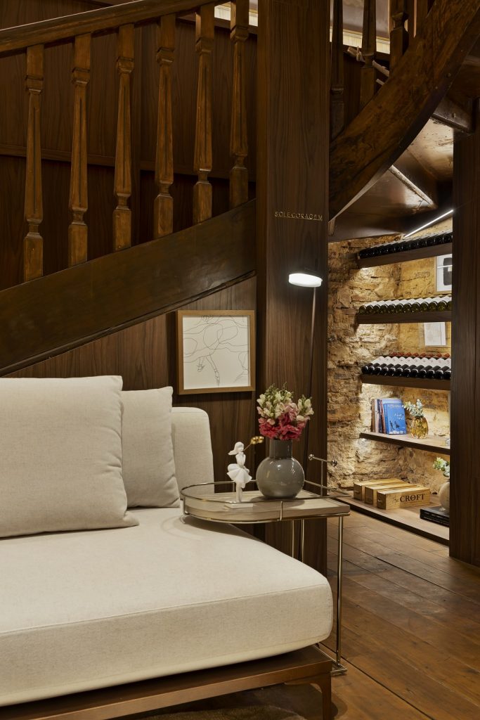 Inspirado nos tons quentes do âmbar, a adega traduz em arquitetura a ideia de acolhimento e elegância natural. Texturas orgânicas, iluminação envolvente, formas curvas, pontos de cor e uma paleta terrosa criam uma atmosfera sensorial, onde o vinho é ponto de partida para momentos que despertam os sentidos.