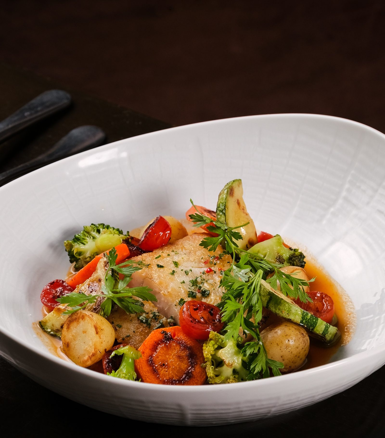 Instalado no Fera, o Arento se destaca pela especialidade em peixes e frutos do mar, sempre frescos e provenientes diretamente da Baía de Todos-os-Santos. O menu executivo propõe uma jornada completa, com entrada, prato principal e sobremesa, reunindo sabores refinados e combinações equilibradas. A experiência pode ser harmonizada com rótulos selecionados da adega da casa, ampliando as possibilidades sensoriais do almoço.