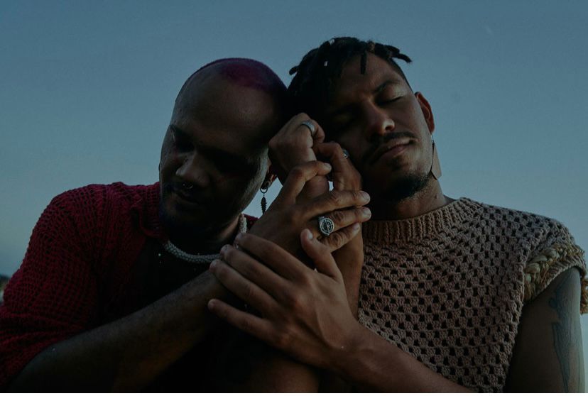 “Minha busca na fotogtafia tem sido reafirmar a condição de existência de pessoas pretas recriando o universo das imagens com afeto e amor entre elas, com alegria. Desse desejo surgiu o convite para fotografar Uran e Spartakus, numa noite beira mar na Casa da Mãe. Ser e estar no mundo refazendo os espaços afetivos, num caminho que leva pra o grande mistério que reside em inaugurar uma história nunca antes contada, exige coragem. O mar aponta a direção horizonte, num encontro azul imenso, onde o olhar se desmancha e encontra esse elo-colo, que amplia o alcance de uma nova escrita visual do imaginário do homem preto sob a ótica do amor” declamou Nti.