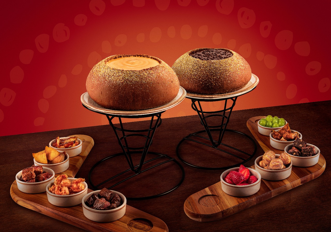O fondue salgado chega em nova versão com cinco queijos tipo Ementhal, Blue Cheese, Cheddar, Gouda e Mozzarella, com cinco acompanhamentos para todos os gostos e estilos. São eles: filé-mignon em cubos, pedaços de frango grelhado ao barbecue, camarões empanados, além dos novos Barbecue Ribs (bites de costela de porco assada e grelhada com barbecue) e Homemade Golden Potatoes, que são deliciosas batatas assadas com toque da casa.