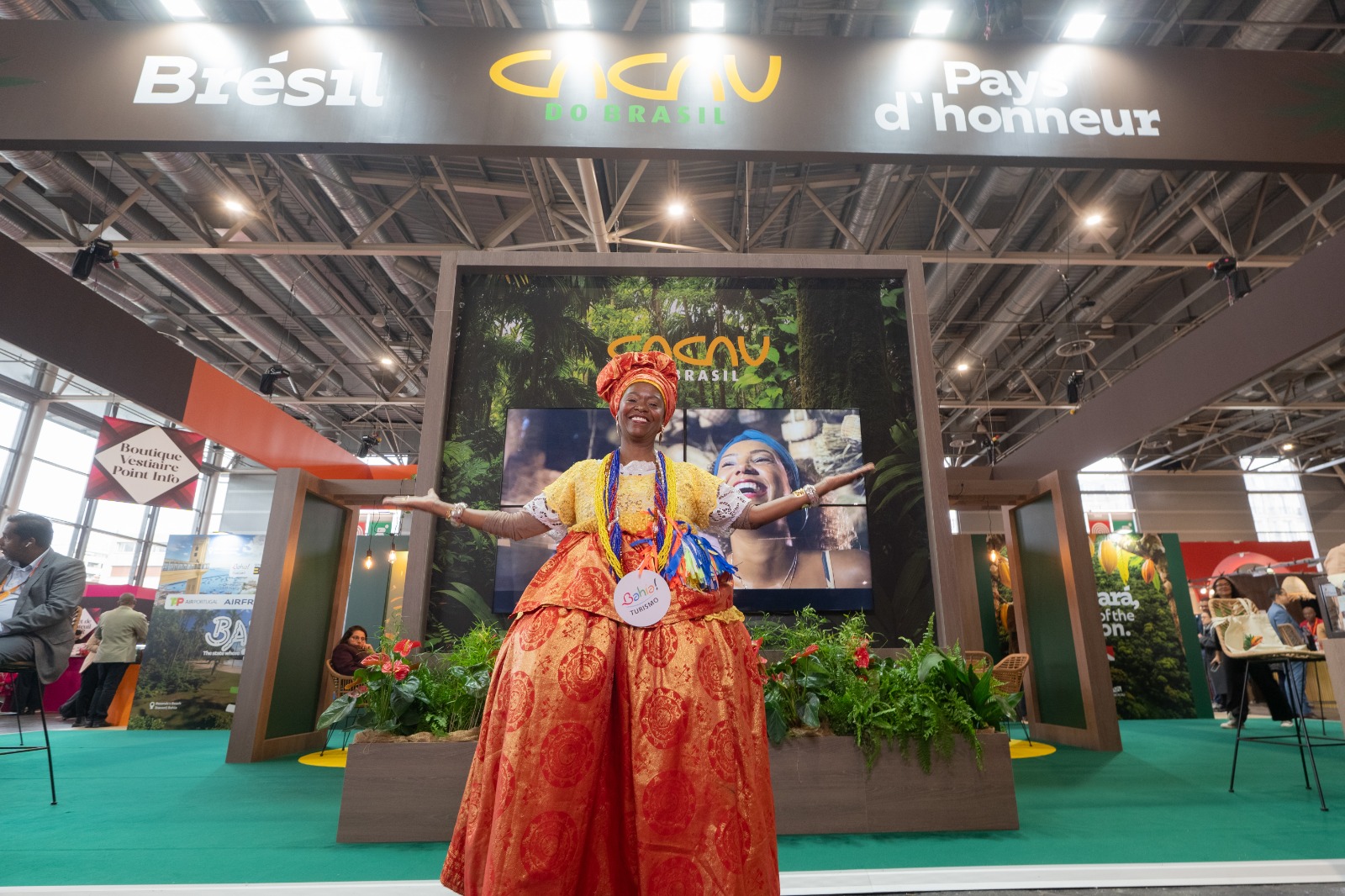 A incursão brasileira na França foi marcada também pela participação de produtores da agricultura familiar de municípios baianos como Ibicaraí, importante região produtora de amêndoas de cacau que faz da matéria-prima fonte de renda, sustentabilidade e desenvolvimento. Transformando sabor em arte, o Espaço Brasil apresentou ainda uma escultura feita 100% de chocolate, esculpida pelas mãos dos artistas chocolatiers Tati Benazzi e Léo Vilela. A construção da obra foi exposta durante o evento e totalizou 350 kg de chocolate e mais de três metros de altura. Com tema “Guardiões da Floresta”, a peça foi uma homenagem à biodiversidade da Amazônia e aos seus povos protetores e a COP30, que será realizada em Belém em 2025.