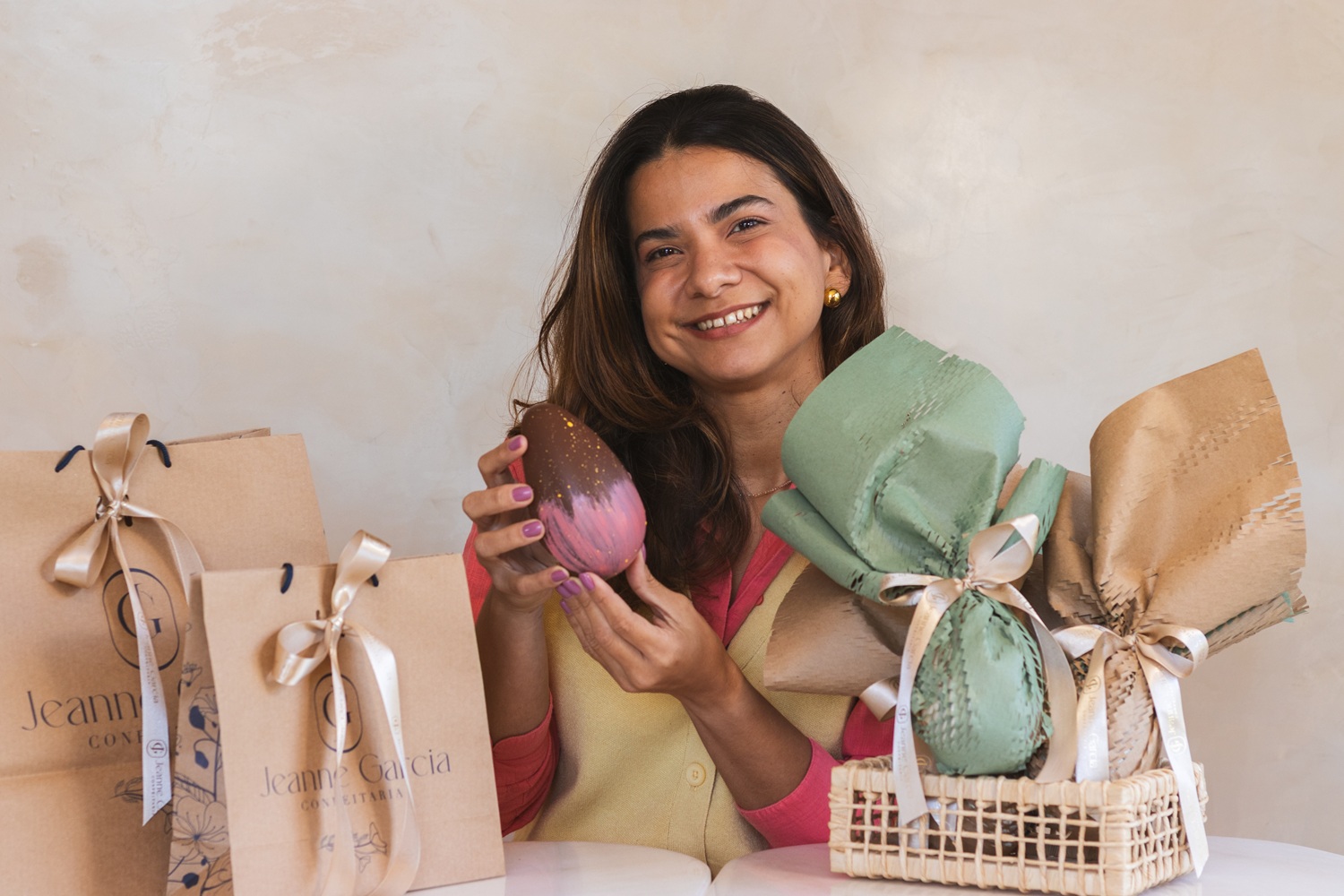 As encomendas podem ser feitas até 28 de março pelo WhatsApp da confeitaria, com retirada na loja da Pituba. Também haverá itens disponíveis para pronta entrega, sujeitos à disponibilidade diária. Saiba mais: @jeannegarciaconfeitaria.