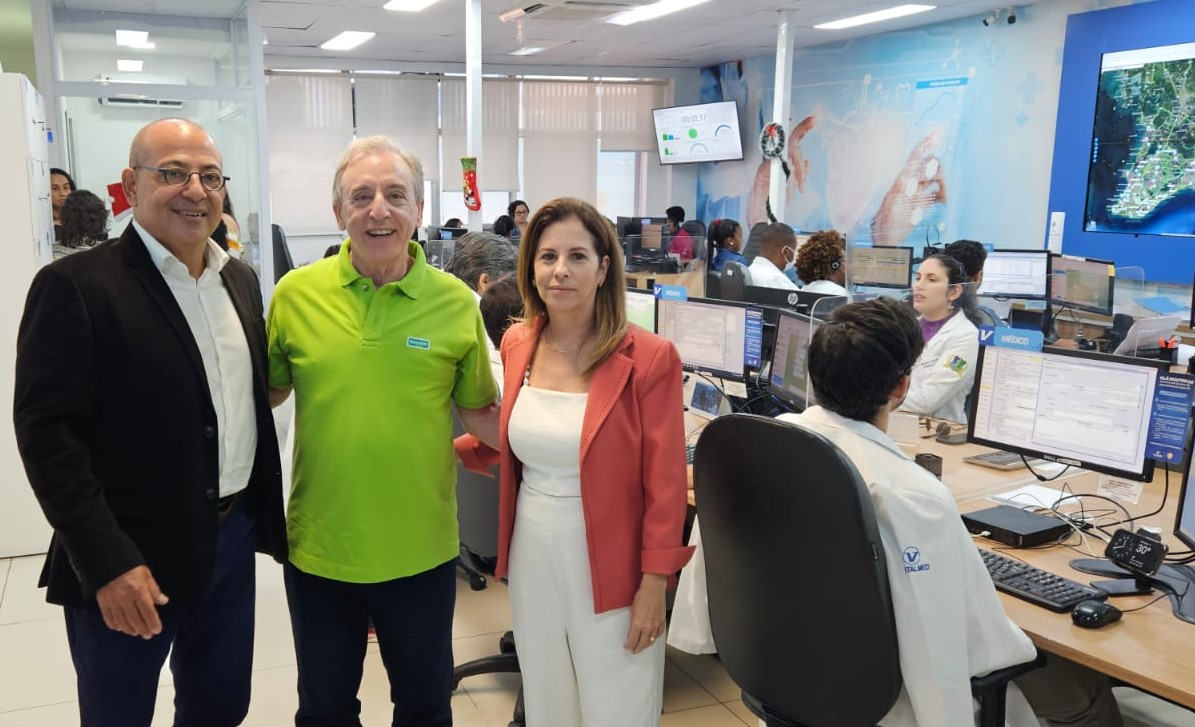 O médico pneumologista e presidente da Unimed Nacional, Luiz Paulo Tostes Coimbra, veio à Bahia e fez uma visita à sede do Grupo Vitalmed. O diretor executivo de Negócios, João Carlos Lacerda, e a gerente de Operações Médicas, Diana Serra, recepcionaram Coimbra, que conheceu a Central de Controle Operacional (CCO) do grupo baiano de saúde, que fez 30 anos de operação.
