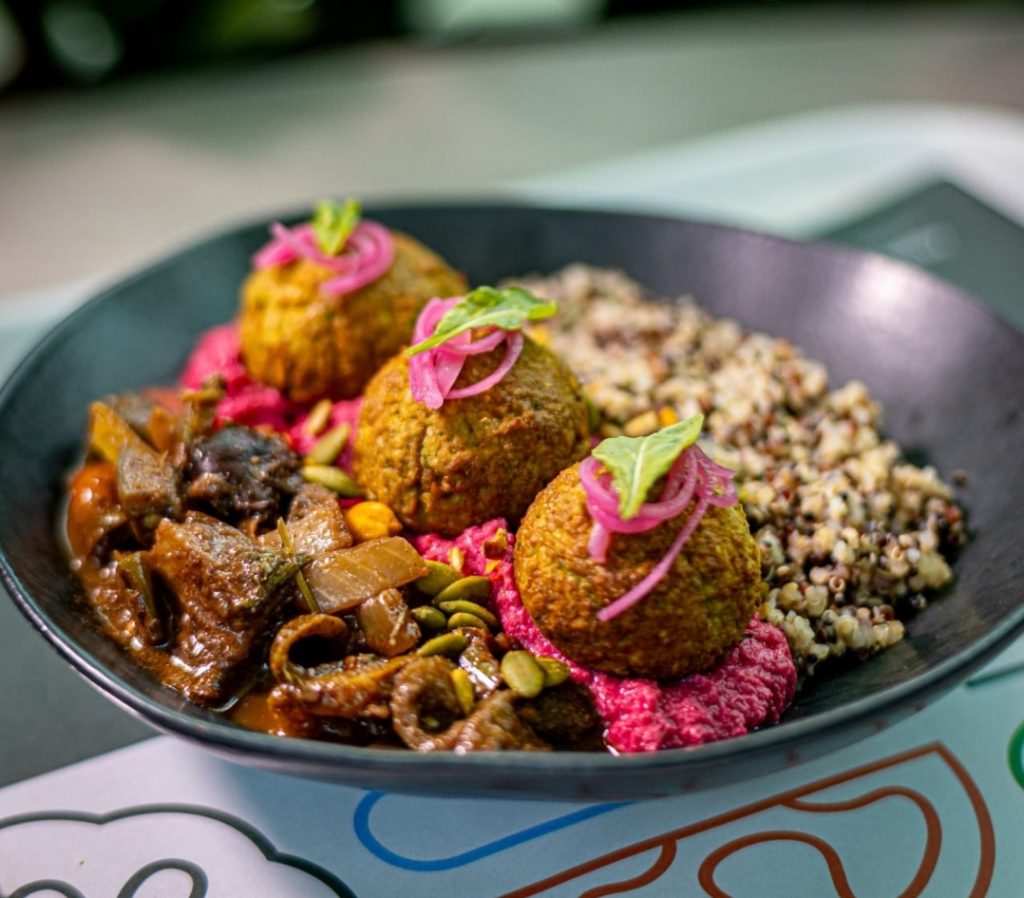 No menu, tem opções de Frango Grelhado, Arroz negro, Salada vinagrete e Guacamole por R$ 39,90. Outra sugestão de prato é a combinação de Falafel, Quinoa, Hummus e caponata por R$ 34. Além disso, tem o Salmão, Quinoa e salada verde com sunomono por R$ 49. E as opções de lanche são: Wrap de Folha por R$29 e Pizza saudável com Salada por R$ 45.