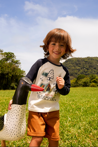 | Da esq. para dir.: Camiseta manga longa com estampa camping (R$39,90), bermuda infantil com barra dobrada (R$79,90); Jaqueta infantil com gola lapela (R$199,90), tricô com fio metalizado (R$99,90), calça wide leg com puídos (R$139,90), camisa jeans clara (R$119,90), camiseta básica amarela (R$39,90), bermuda de sarja off white, tênis abotinado em tons terrosos (R$119,90); bermuda de moletom (R$59,90) e blusão de moletom com estampa nas costas (R$69,90) | Créditos: Divulgação Renner |