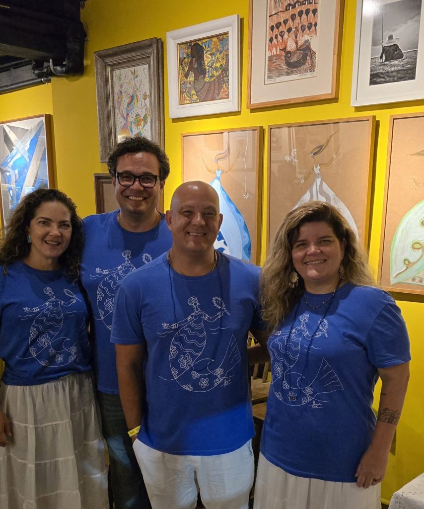 O que nasceu da estampa de uma camisa virou a exposição “Iemanjá da Silva”, aberta no Silva Cozinha, no coração do Rio Vermelho, na véspera do último 2 de fevereiro. O artista plástico Alexandre Feliciano foi convidado pelo chef Ricardo Silva para assinar as camisas que alguns de seus convidados usaram na tradicional reunião que faz, todo ano, das últimas horas do dia 1º à alvorada do dia 2.