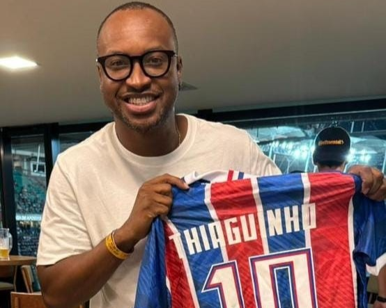 Na noite desta quarta-feira (26), Thiaguinho marcou presença na Casa de Apostas Arena Fonte Nova, para assistir ao jogo entre Bahia e Vasco. O cantor vivenciou pela primeira vez a atmosfera única de uma partida na Arena, e vibrou com os momentos emocionantes entre o tricolor baiano e o cruz-maltino. O artista também participou de um lançamento da Itaipava.